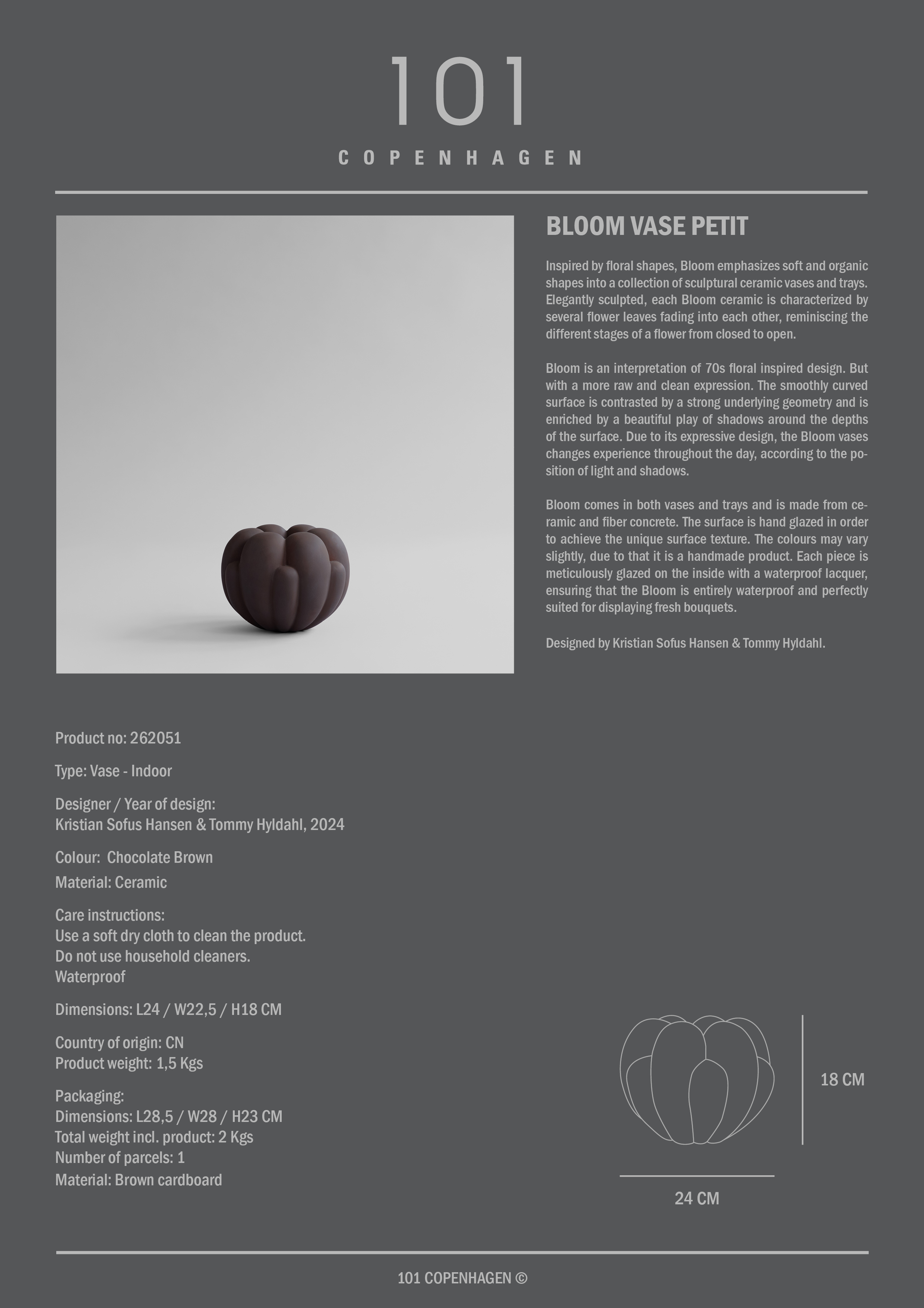 101 Copenhagen Bloom Vas Liten Chokladbrun