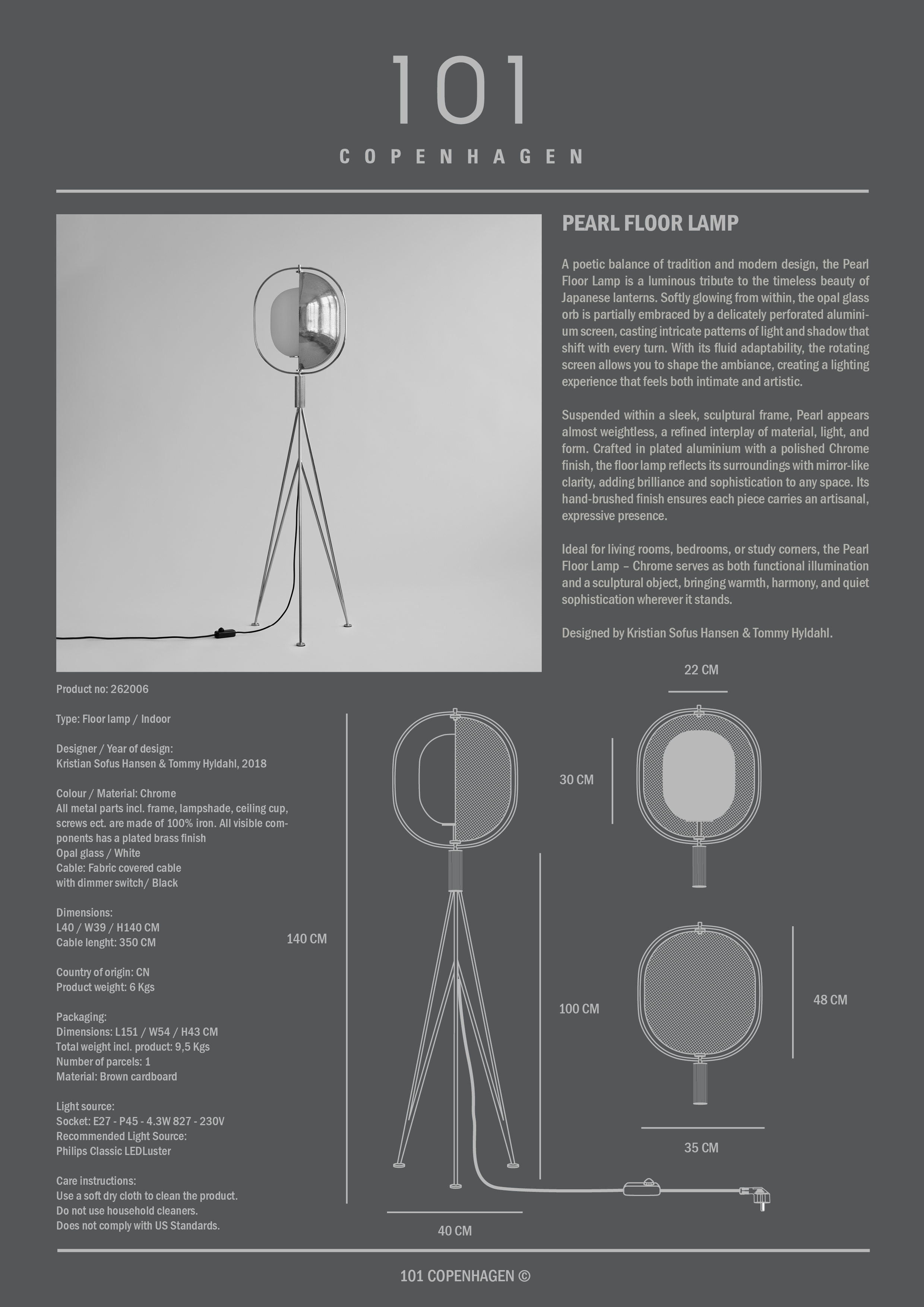 101 Copenhagen Pearl Golvlampa Krom