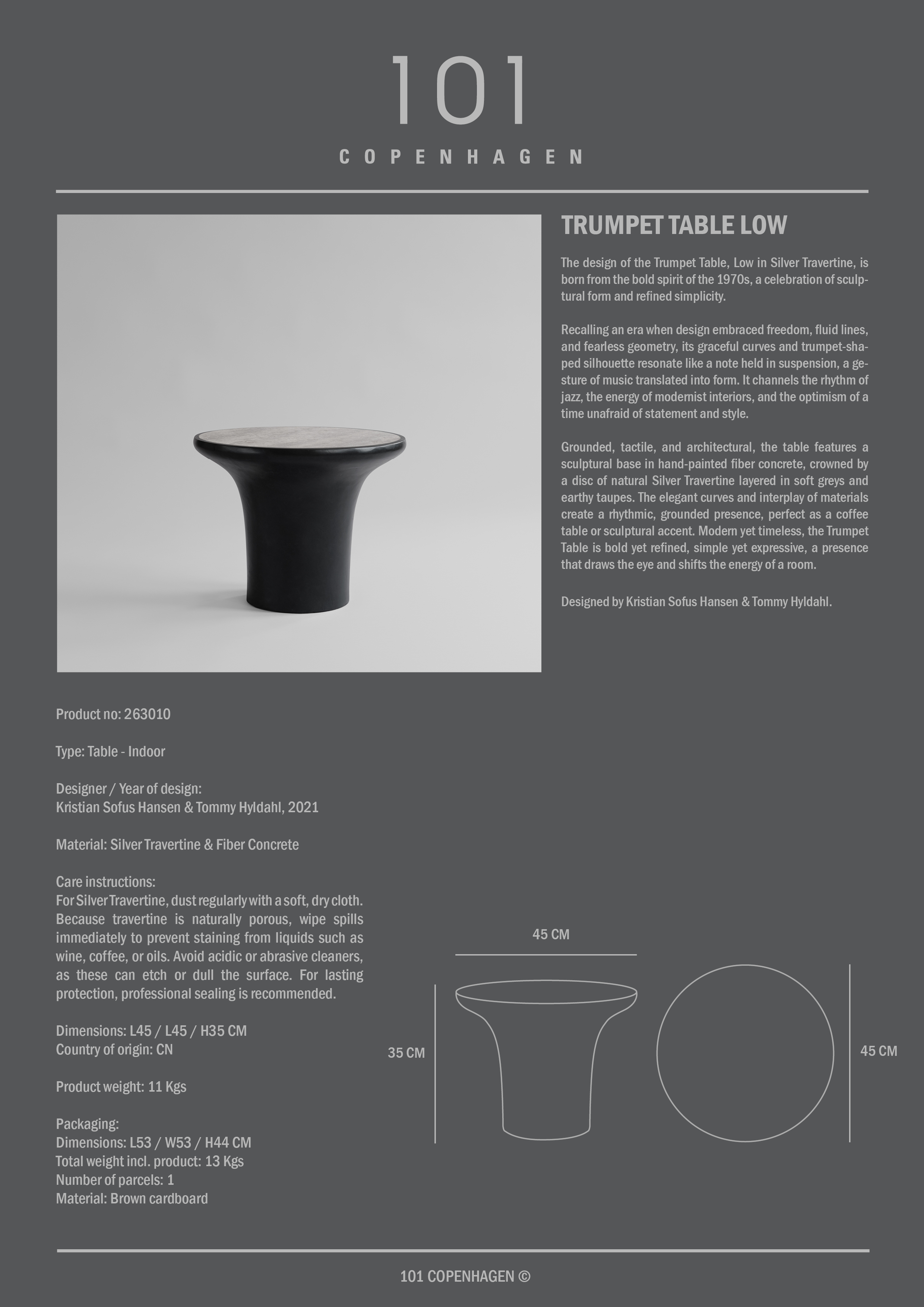101 Copenhagen Trumpet Sidobord Lågt Silver Travertin