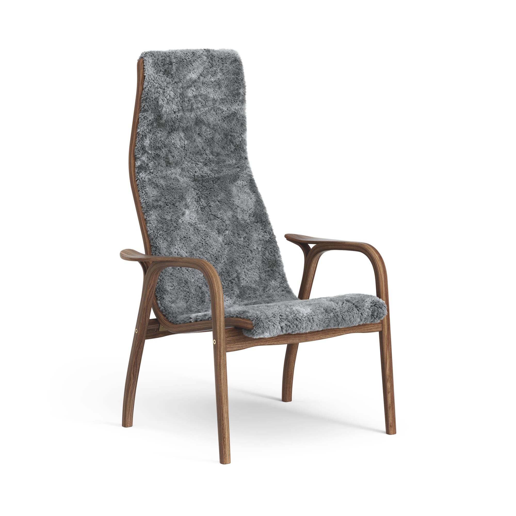 Swedese Lamino Fåtölj Hög Lackad Valnöt/Skandinavisk Grå/Fårskinn
